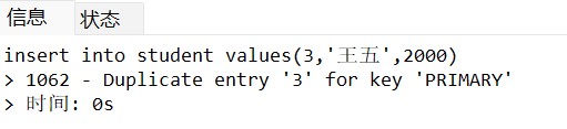 下面是事务1报错信息,这里事务2已经执行,表中已有元素事务1执行就会报错: