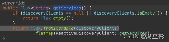 继续跟踪到reactivecompositediscoveryclient.getservices()方法: