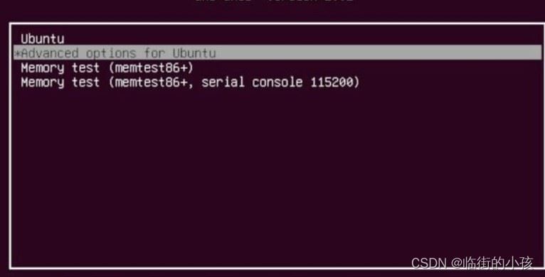 这个时候进入advanced option有应该有至少两个内核 ( 点进 advanced options之后有四个选项),说明内核有更新。