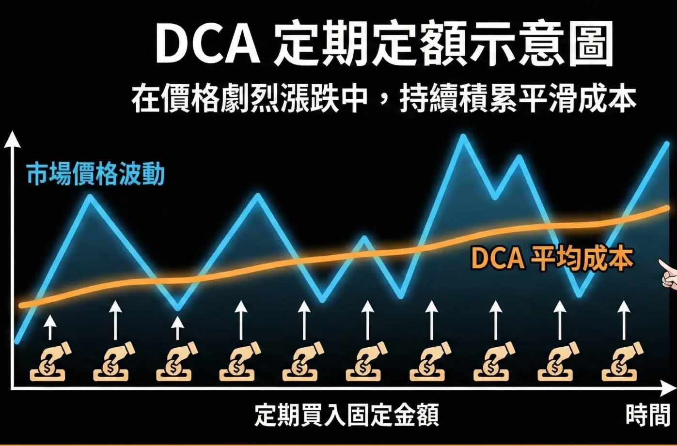 - 没办法盯盘:如果你下班、下课后没有时间能够研究投资,通过dca策略可以确保你持续参与在市场,还能降低风险。