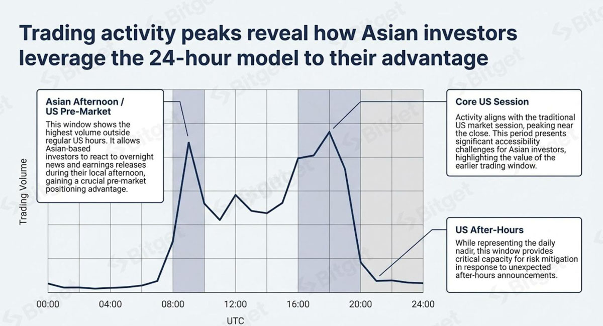 • 亚洲午后 / 美股盘前时段(utc 08:00-10:00): 这是常规交易时段外最活跃的窗口。对亚洲投资者具有关键价值,因其恰逢当地下午时段,使其能及时响应隔夜新闻与财报,获取至关重要的盘前布局优势,而无需进行夜间交易。