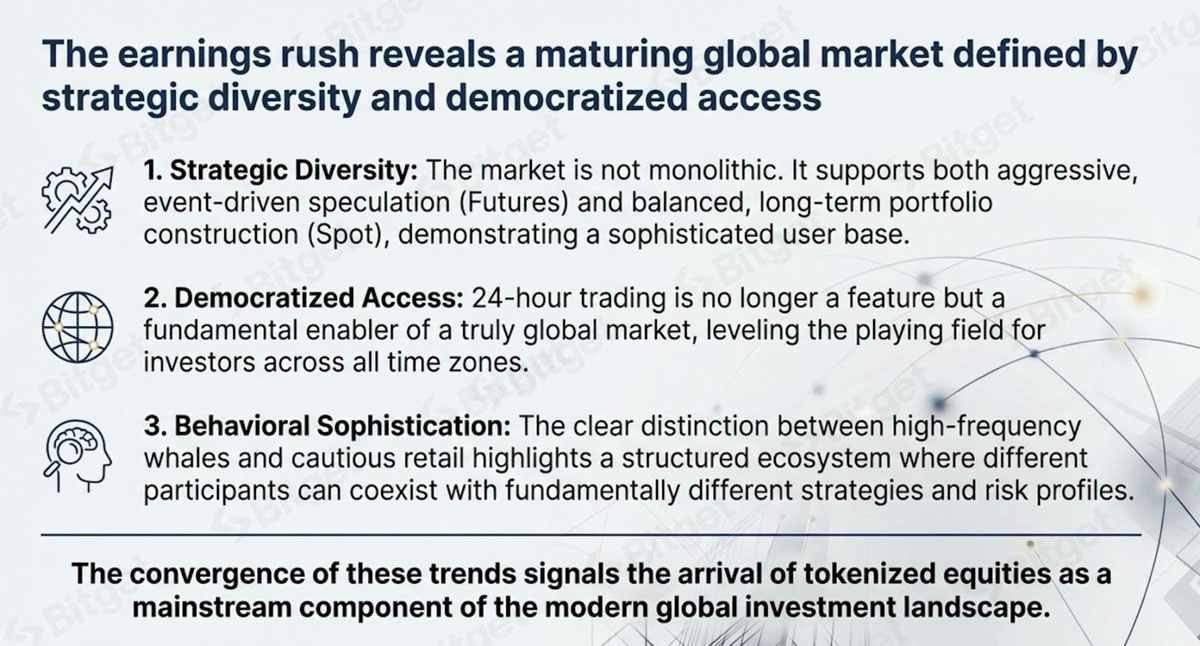 这场「财报季热潮」并非单一事件,而是由三股强大且相互关联的力量共同驱动,这些力量定义了全球股票交易的新时代。这三股力量分别是交易标的的特性、24 小时市场提供的全球可达性,以及参与者表现出的独特行为模式。本报告将逐一解析这三股力量,为这个日趋成熟的全球市场现象提供全面深入的分析。