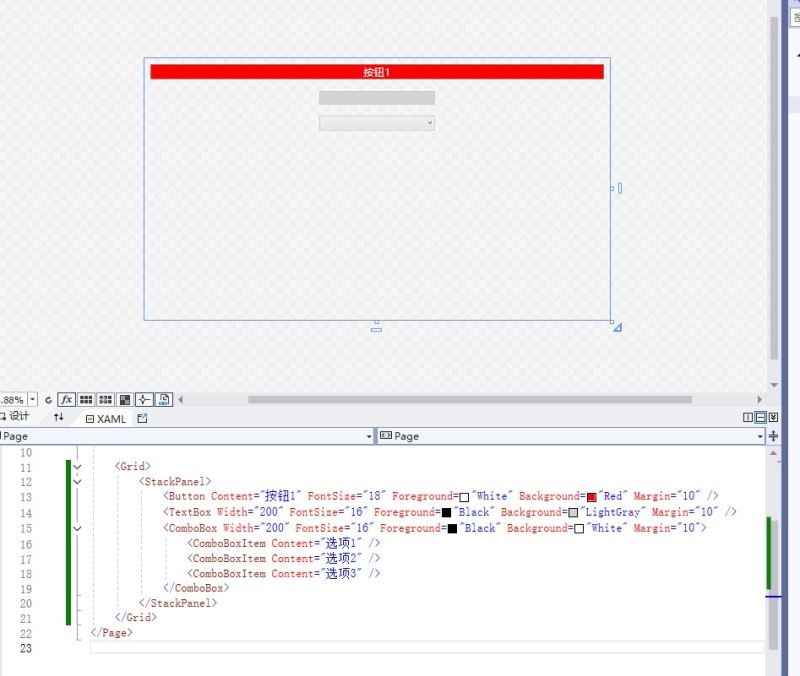 <button content="按钮1" fontsize="18" foreground="white" background="red" margin="10" />