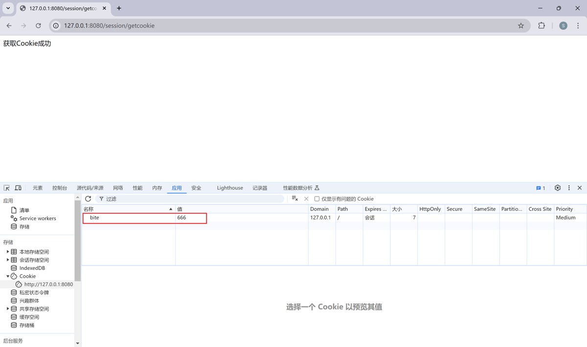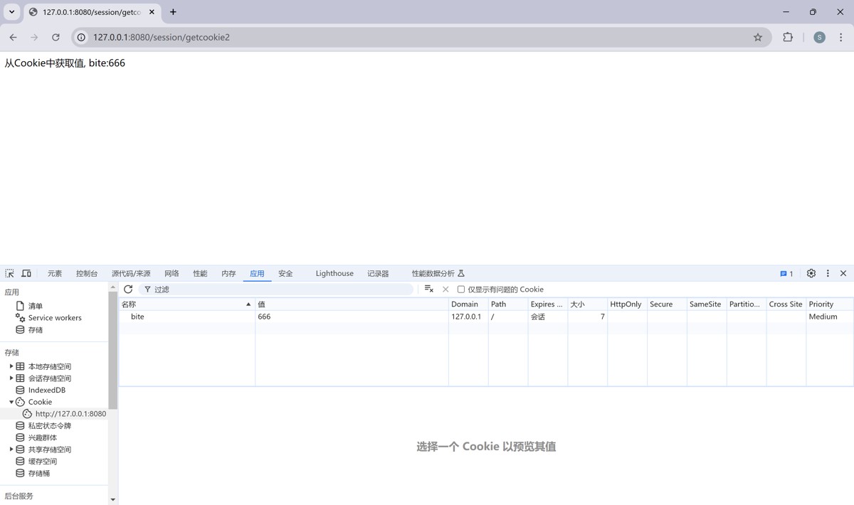 上面获取的话,就是获取的所有的 cookie,而如果想要获取某个 cookie,就需要使用 @cookievalue