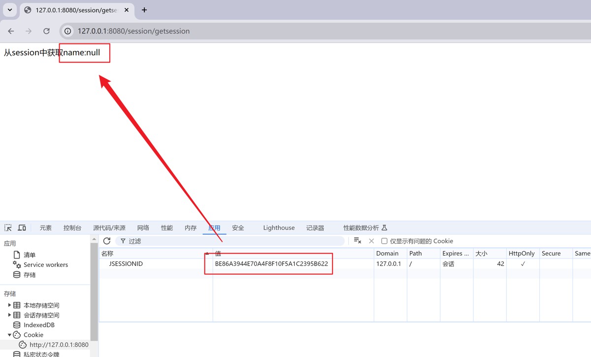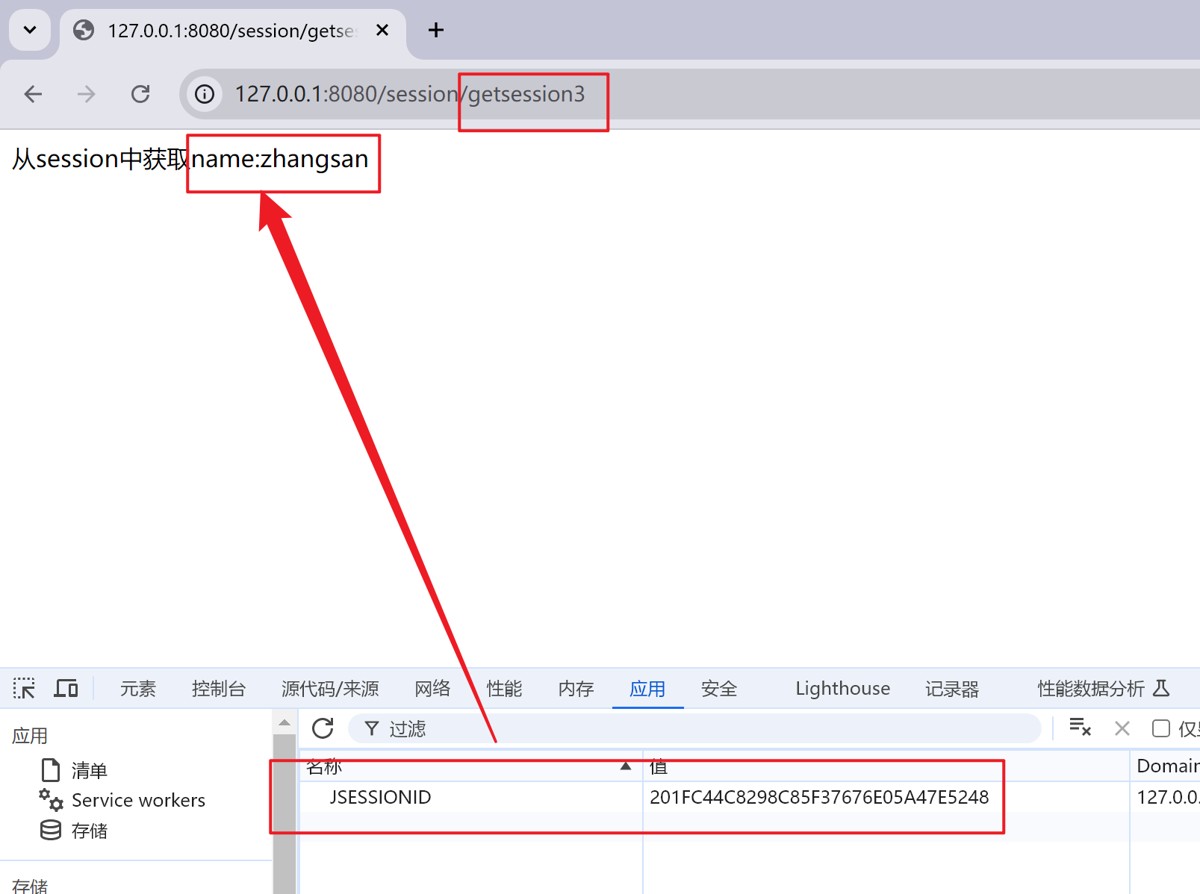 cookie中获取sessionid,然后根据sessionid获取session对象。如果没有获取到,就会创建一个session对象 - 创建好