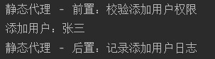 system.out.println("静态代理 - 前置:校验添加用户权限");