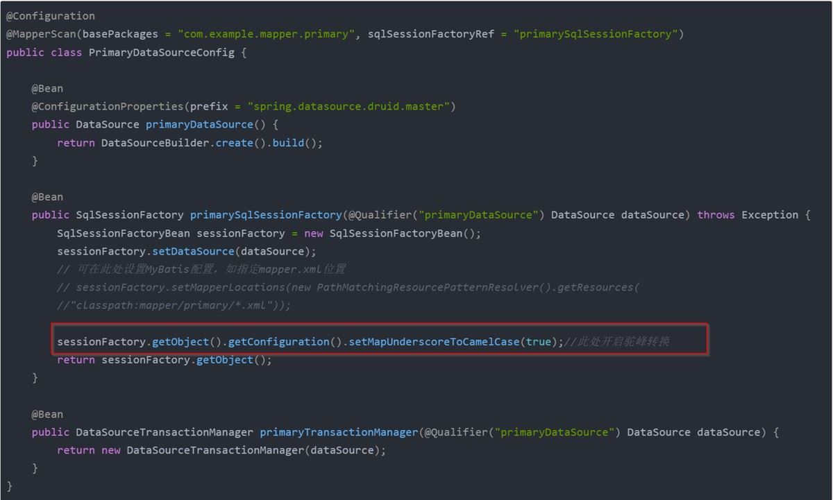 sessionfactory.getobject().getconfiguration().setmapunderscoretocamelcase(true);//此处开启驼峰转换