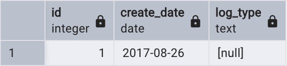 create table log_ins( id serial, user_id int4, create_time timestamp(0) without time zone );
