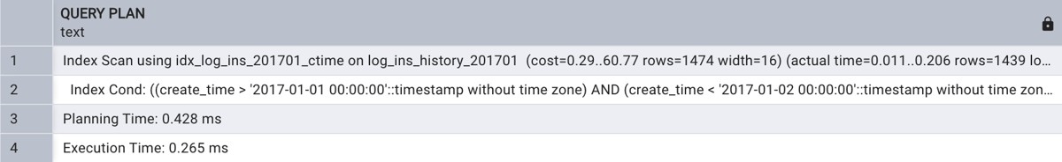 explain analyze select * from log_ins_history_201701 where create_time > '2017-01-01' and create_time < '2017-01-02';
