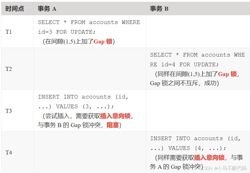 场景 3:gap 锁冲突导致的死锁