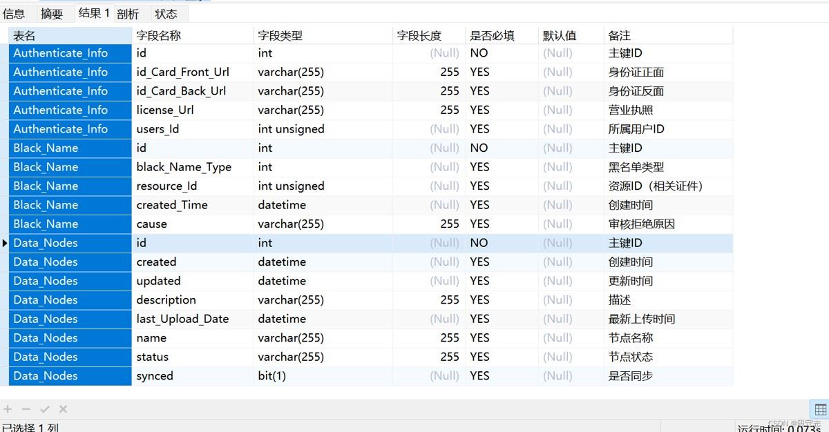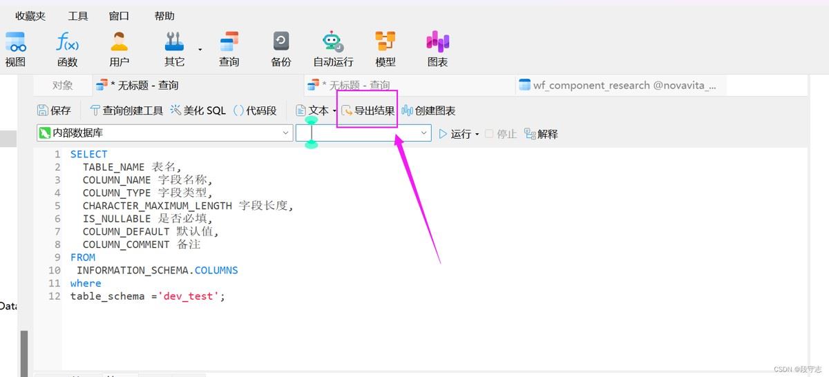 注意上面的第一列是数据库中的表名称,如果不需要刻意基于上面的sql将这个表名字段去掉。