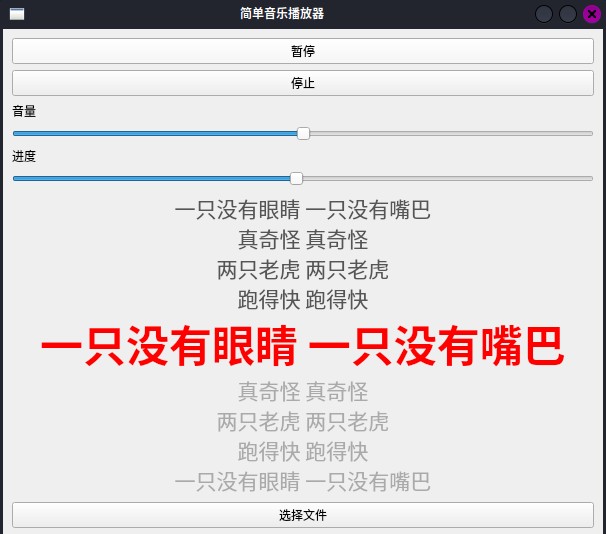 load_lyrics方法:解析lrc格式歌词文件update_lyrics方法:根据播放进度实时更新歌词显示