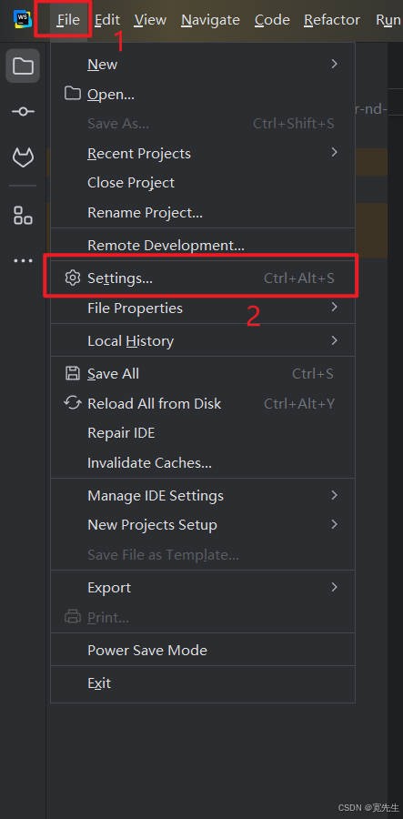 idea拉取代码的时候需要输入token环境win10+webstorm-2024.3.4+git点击file----->settings如图展开version control------>