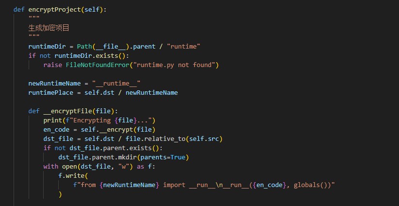 encryptor.encryptproject() # 输出到 testproject-dist/