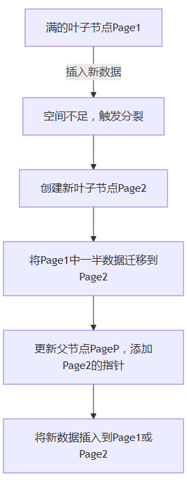| 数据迁移量 | 0(直接追加到新页) | 大(每次分裂迁移一半数据) |