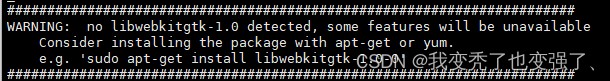 发现有警告,原因是kettle需要图形化的界面来运行,linux是命令行模式,触发警告,消除警告可安装webkitgtk