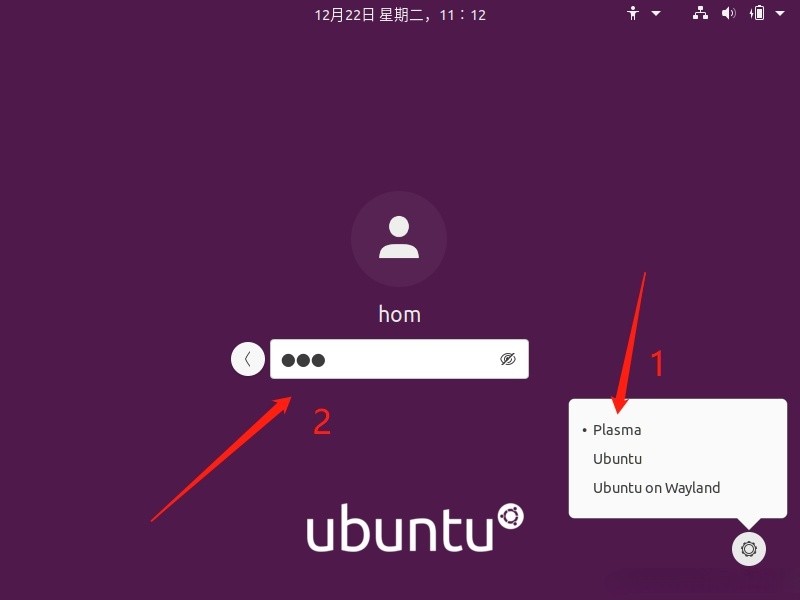 - 重启后,在登录界面就可以选择想使用的桌面环境了