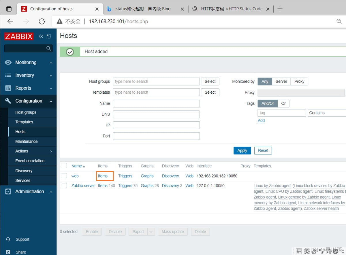 [root@localhost ~]# zabbix_get -s 192.168.230.132 -k check_status