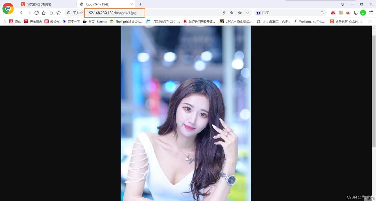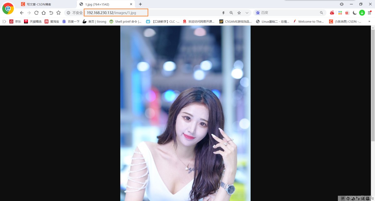 [root@localhost conf]# cd /usr/local/nginx/html/ [root@localhost html]# ls 50x.html index.html index.php tset [root@localhost html]# mkdir images [root@localhost html]# cd images/ [root@localhost images]# ls #随便找张照片放上去 [root@localhost images]# ls [root@localhost images]# ls 0075tgutgy1gvuz5ma0hhj30l816utg4.jpg [root@localhost images]# mv 0075tgutgy1gvuz5ma0hhj30l816utg4.jpg 1.jpg [root@localhost images]# ls 1.jpg
