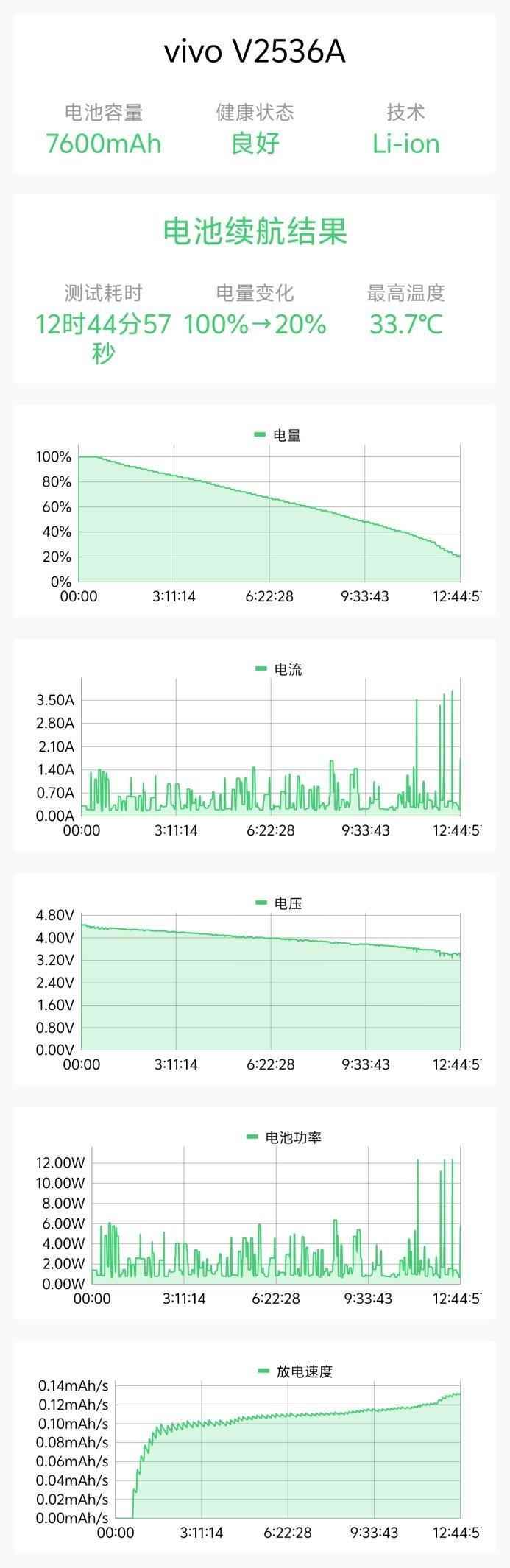 在我们实测下来,这款手机在100~20%的续航时间测试中坚持了12小时44分,作为一款性能机,这个表现相当亮眼,相比上代iqoo z10 turbo+要多出一个小时的时间。长途出门也不再心惊胆战,不用总是担心电量不足。