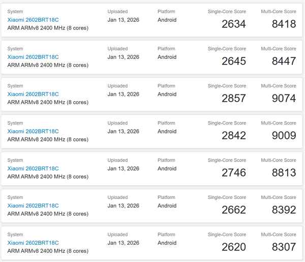 目前该机已经有大批跑分现身geekbench数据库,单核2815分,多核9102分。