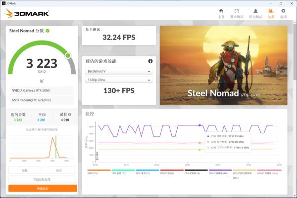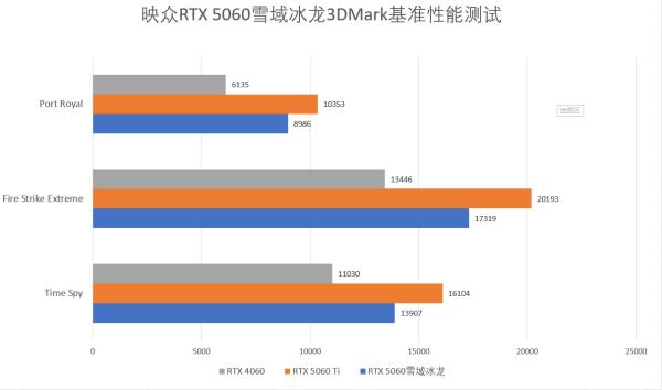此外,在steel nomad与steel nomad light中,映众rtx 5060雪域冰龙显卡分别获得3223分与14129分。