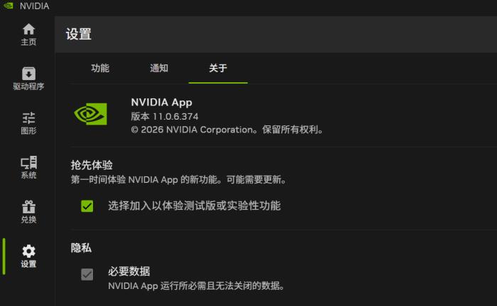 截至评测进行时,nvidia dlss 4.5处于测试版阶段,将于未来数周内推送正式更新,因此当前我们需要首先勾选nvidia app中的“选择加入以体验测试版或实验性功能”,等待app推送最新测试版本(11.0.6.374及以上),并将驱动更新至591.74及以上版本。