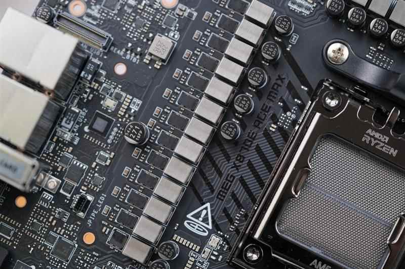18+2+1路智能供电模组,每相供电均采用了来自瑞萨的sps drmos,支持110a的电流输出。比起上代的90a drmos,单路供电能力提升20%,同时温度更低。