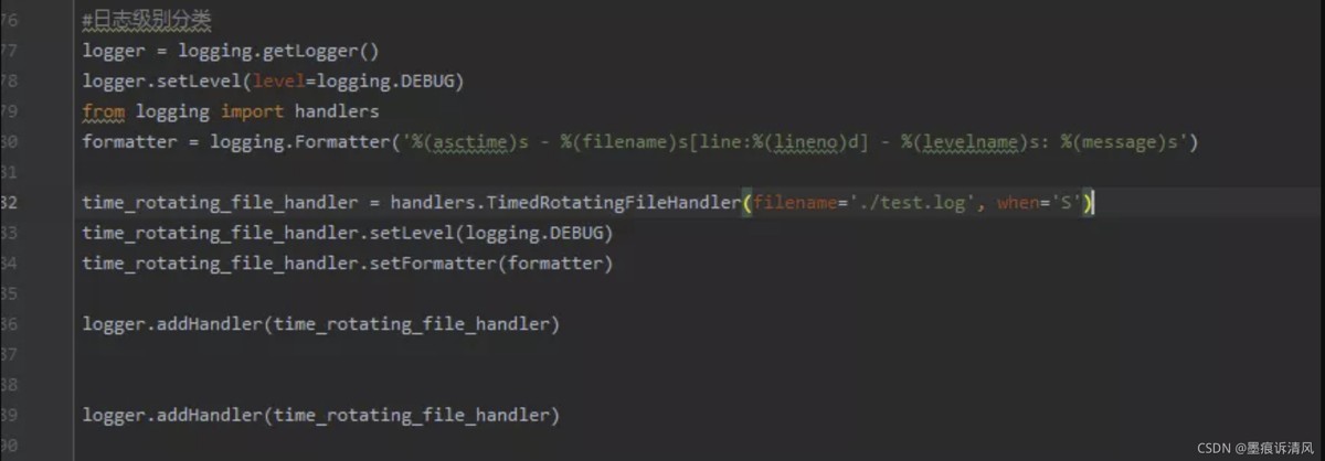 - logging.handlers.timedrotatingfilehandler -> 按照时间自动分割日志文件