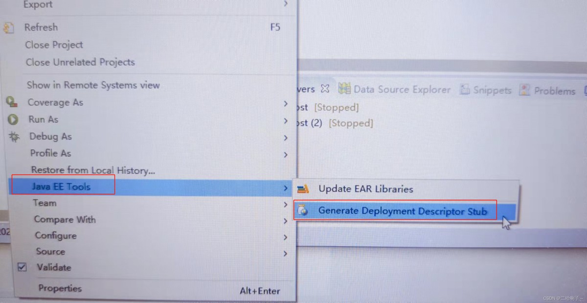 我们找到 java ee tools 中的下图画圈部分前面有小瓶子这标志地方点击。