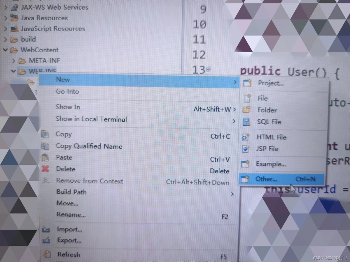 右键选择【web-inf】 ,选择【new】再选择【other...】