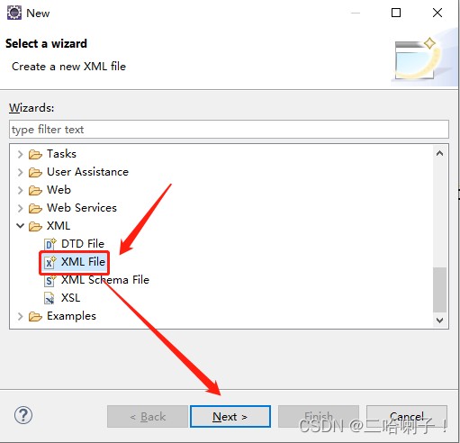 下滑找到【xml】,点击打开后选择【xml file】,然后点击下一步