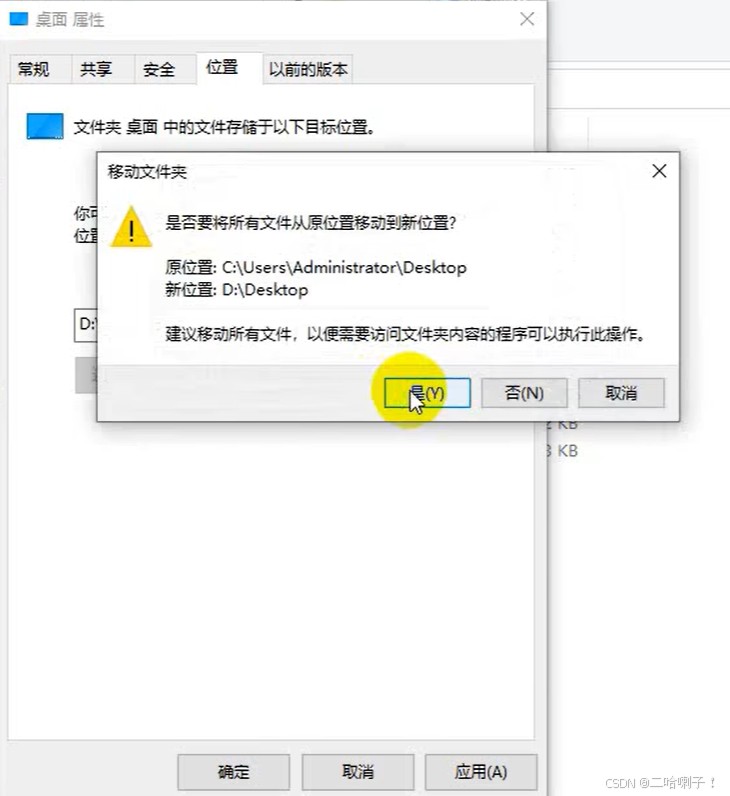点击【是】,把原文移动到新位置,以后桌面就可以随便放了