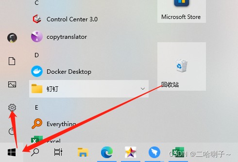 我们只要单击桌面左下角【开始键】→选择小齿轮按钮进入到设置