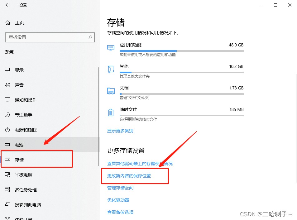 然后选择系统,进去后选择【存储】,然后选择 【更改新内容的保存位置】