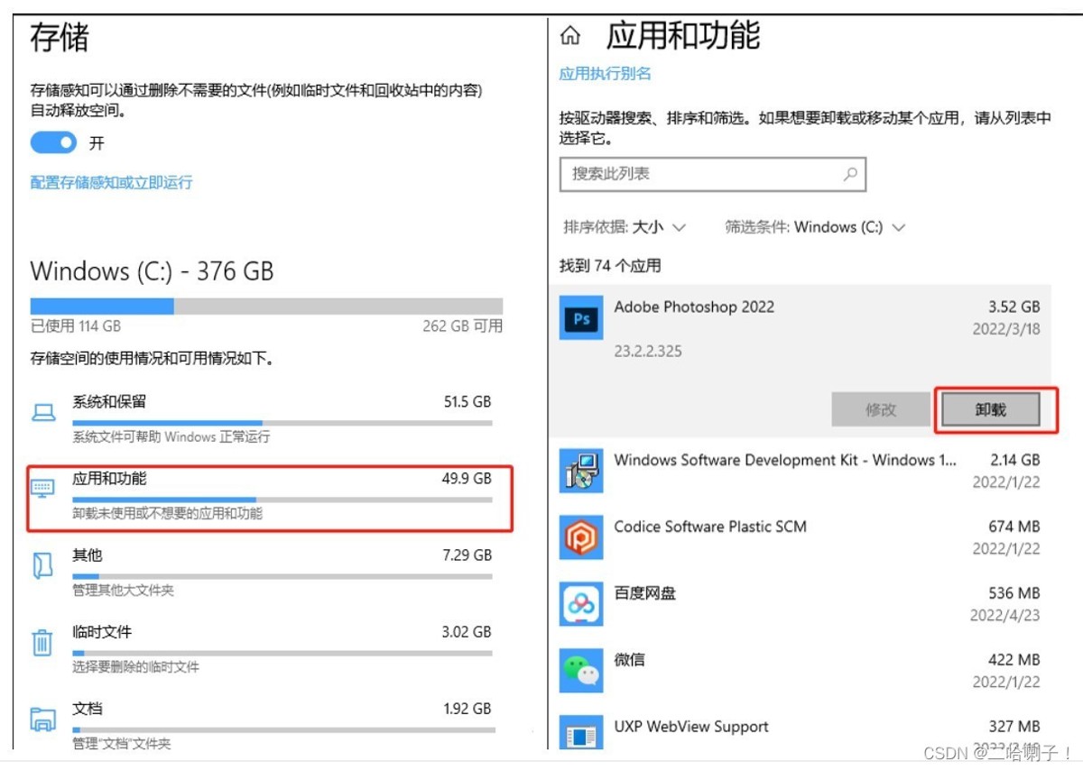 把这些装在c盘的大型软件直接卸载或重装,再下载或安装位置选择别的盘