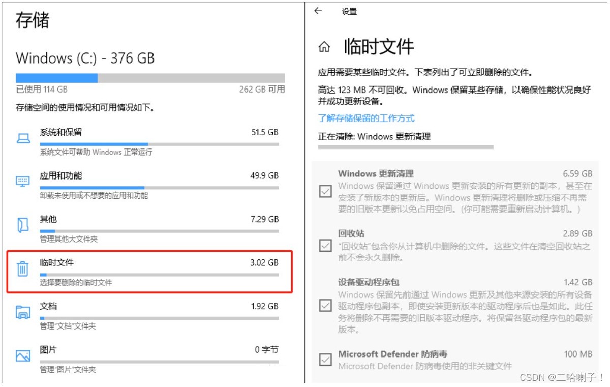 还是存储这个页面,点开c盘就能看到空间分布,点击临时文件一键删除