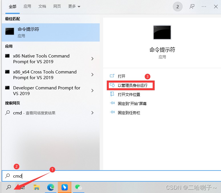 出来窗口后用管理员身份运行