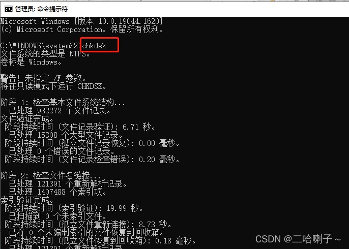 先输入:chkdsk