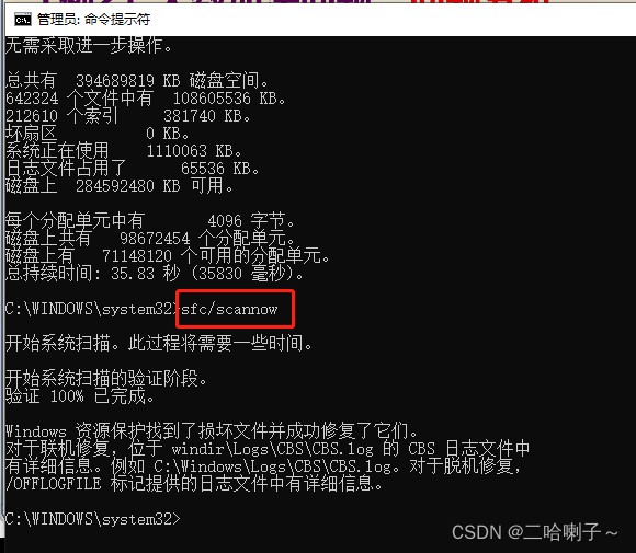 再输入:sfc/scannow