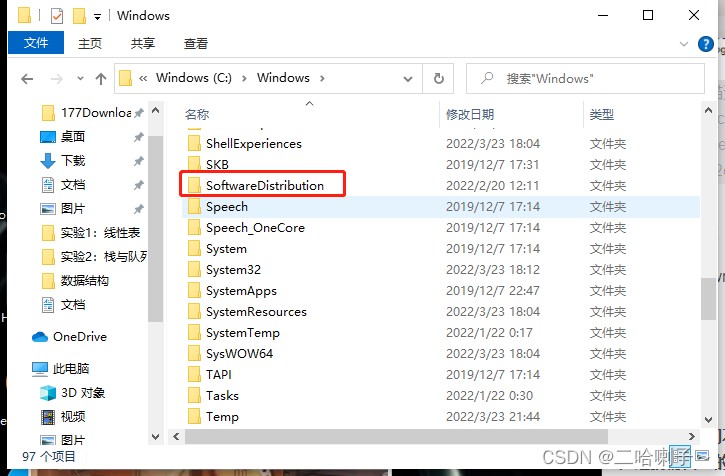 在c盘 windows文件夹下找到 softwaredistribution文件夹,双击打开就可以看到了