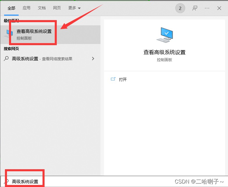 在开始菜单搜索高级系统设置