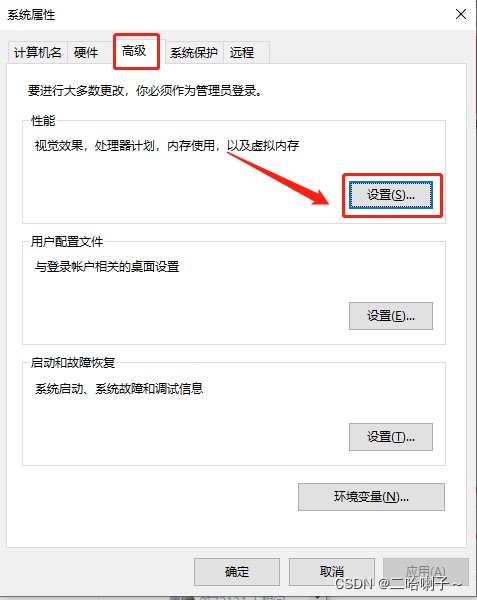 在高级选项卡中选择设置