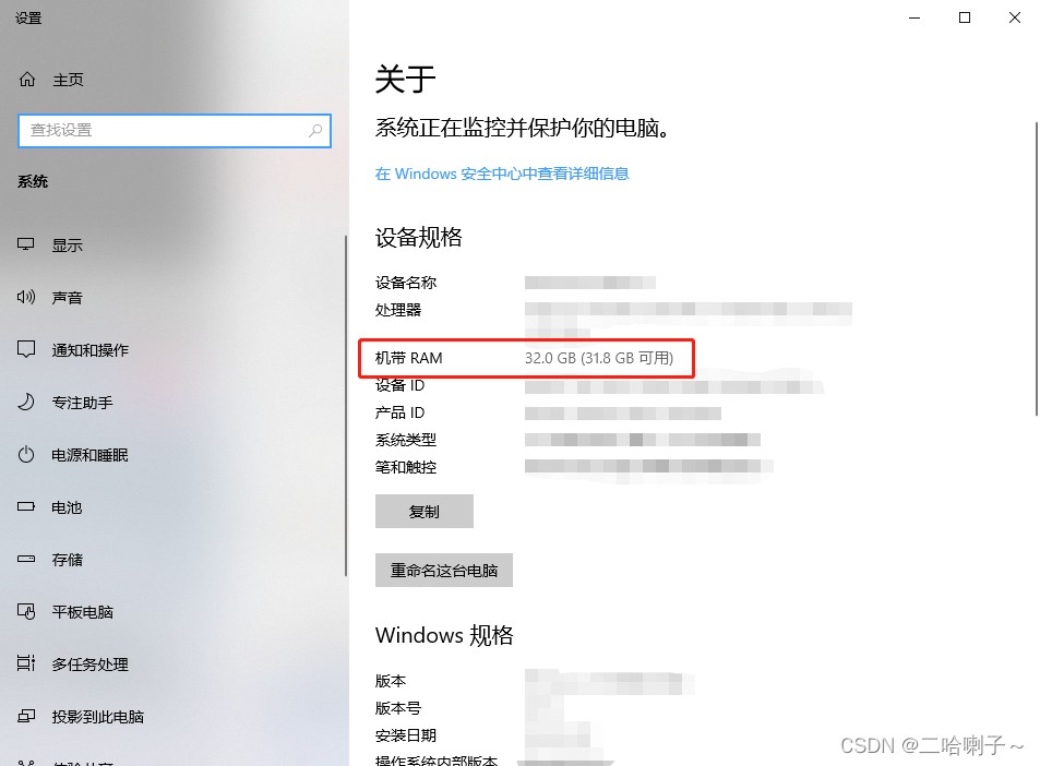 如果需要手动设置首先右键此电脑选择属性,记住这个数值,这是电脑的运行内存