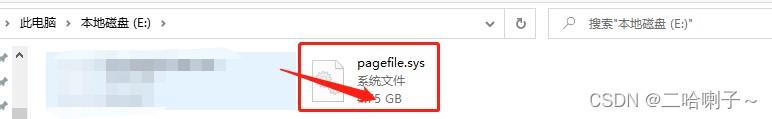而在e盘下有了个新的 pagefile.sys文件,而且能看到它的大小
