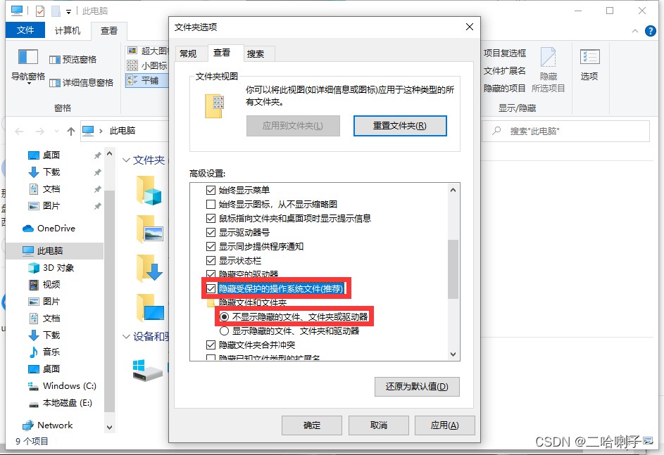 将系统保护文件隐藏起来以确保安全,当然别忘了下面应用和确定