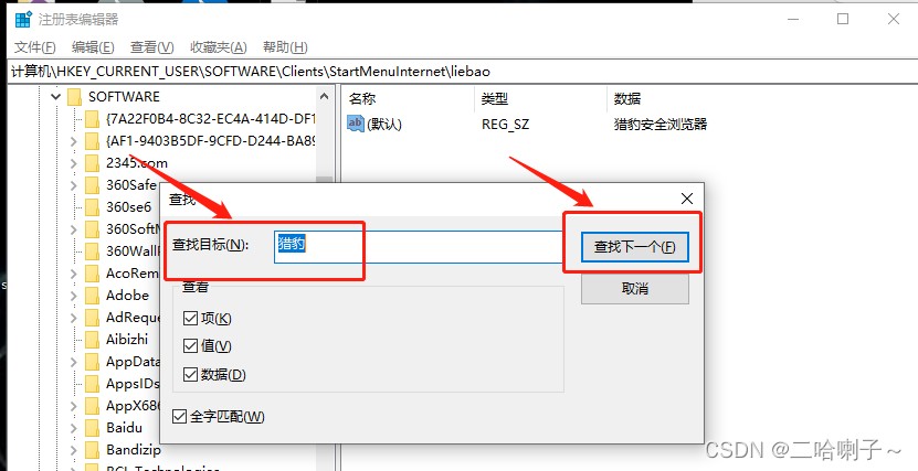输入你要卸载的软件名,单机【查找下一个】(中文找不到试试拼音,拼音找不到试试英语)
