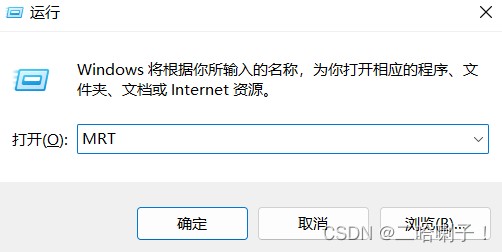 同时按【win+r】,输入mrt回车,调出系统自带的恶意软件删除工具