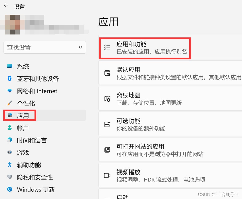 【win+i】打开设置找到应用,选择应用和功能