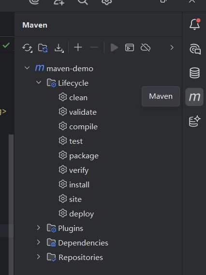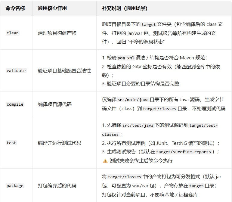 这一部分表示整个maven的一个生命周期。不过我们平时只需要用到前五个就可以。